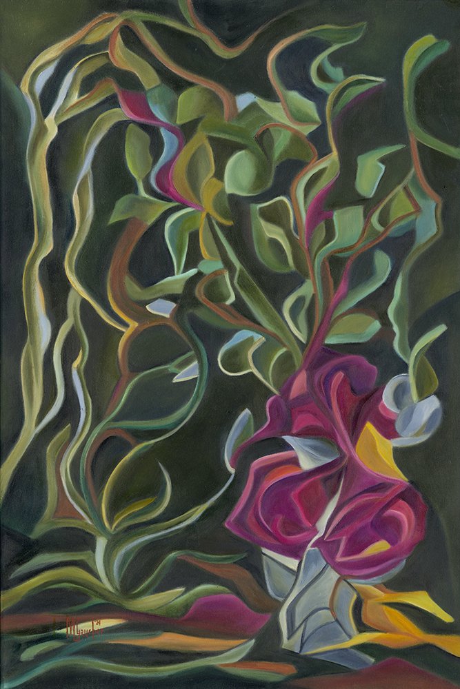 Informed by cubism, Marian’s abstract paintings feature geometrics, fracturing, unpredictable lines and vibrant colours. Her works encompass still life, natural settings, nature’s creatures, interiors, exteriors and figures. The cubist style greatly appeals to her, as it offers a certain mystery, while revealing the subjects in unexpected ways. She enjoys abstracting beautiful and interesting subjects in such a way as to keep them identifiable, while also making them a puzzle for the eyes. Her abstract paintings are a feast for the eyes and enliven her varied subjects.